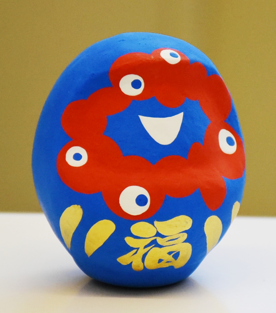 その際、記念の品として大阪万博キャラクターのだるまを頂戴しました。「ミャクミャク」というキャラクターの名前は、 「脈々と受け継がれてきた人間の DNA や知恵、技術、歴史、文化を未来へつなぐ」という意味を込めて、「脈々(ミャクミャク)」という名前が選ばれたそうです。また、「いのちの輝き」や未来への可能性を象徴するキャラクターとしてデザインされたそうです。